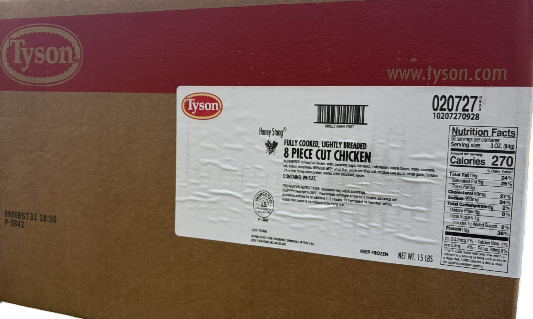 Tyson – #020727 FC Chicken Honey Stung 8 Piece Cut – 15Lbs